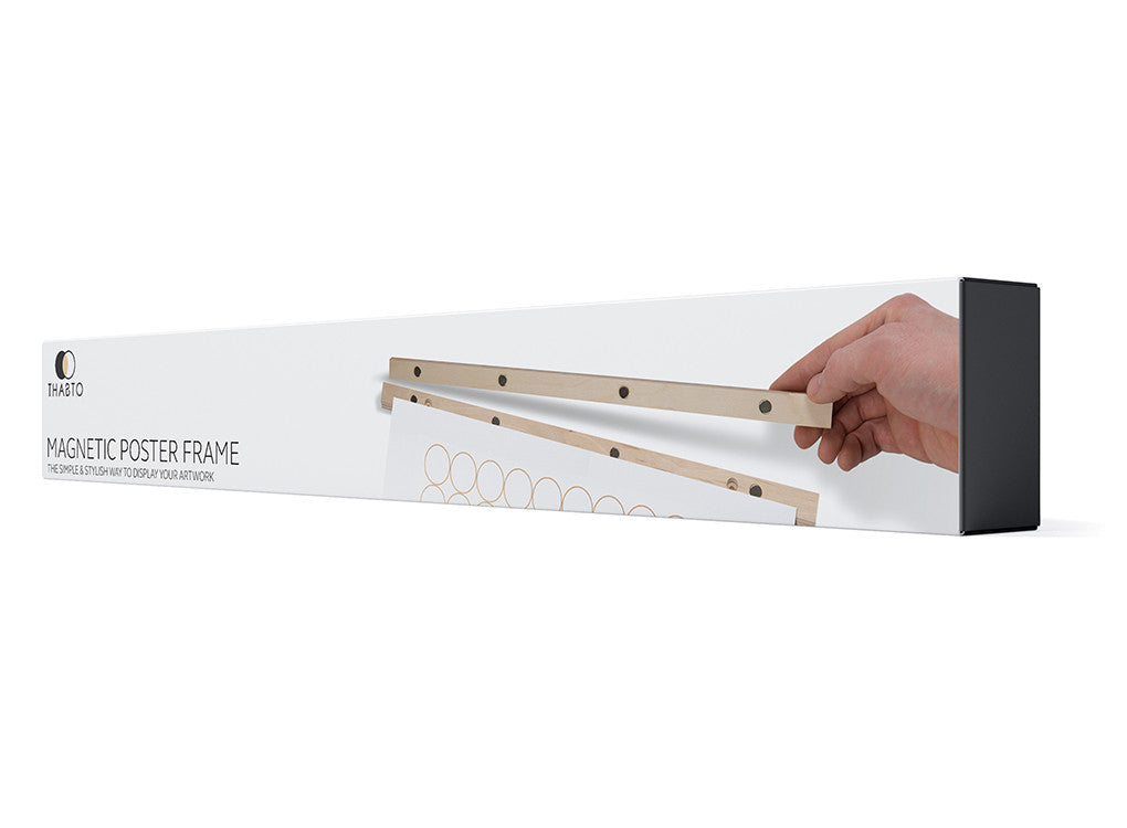 Each Magnetic Poster Frame consist of 4 wooden strips of wood with embedded neodymium magnets.